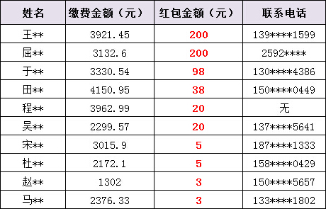 从7月1日开始,截止目前通过沈阳市便民供热缴费平台和微信辽宁热付通缴纳采暖费,领取红包前十位名单。